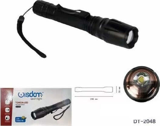 Torcia Led Ricaricabile Cree T6 Luce Regolabile Casa Campeggio Escursioni Dt-2048