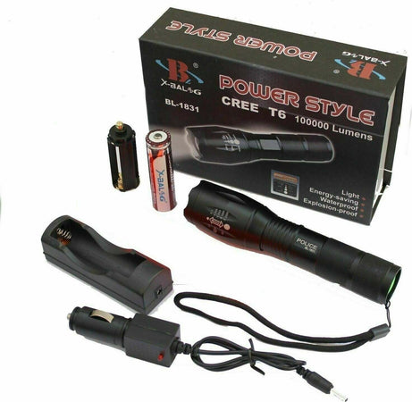 TORCIA TATTICA MILITARE LED T6 100000Lm ZOOM RICARICABILE BICI,PESCA BL-1831