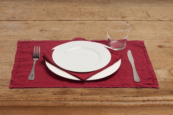 Set di 2 tovagliette americane coppia tovagliette 35 X 50 CM in 100% puro lino lavato delavè stone washed morbido resistente elegante made in italy BORDEAUX