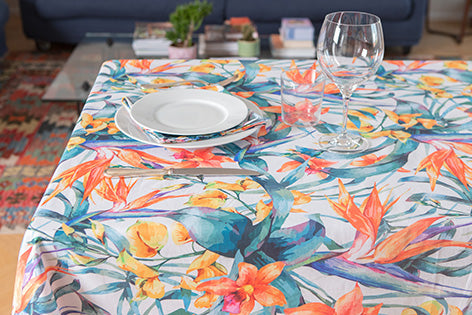 Tovaglia da tavola in cotone stampa digitale dai colori vivi ed intensi lavabile in lavatrice made in Italy TROPICI
