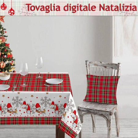 Tovaglia Natalizia In Stampa Digitale Fantasia Tartan Babbo Natale Renne 6 Posti