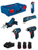 BOSCH Kit 0615990N1D (GSR 12V-15 + GOP 12V-28 + GDR 12V-105 + GSA 12V-14 + GLI 12V-300 + 3 x 2,0 Ah + GAL 12V-40 + L-Boxx XL)