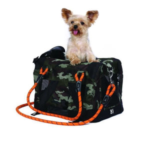 Borsa da trasporto - M PETS - REMIX 2 in 1 Camouflage & Orange - 41 x 28 x 28 cm - Pieghevole - Leggera - Cintura a pettorina