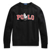 Ralph Lauren Felpa Uomo Nera Maxi Logo Polo Big Pony Girocollo Felpa Tinta Unita Nera Scritta Rossa