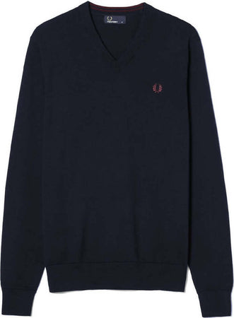 Fred Perry Maglione Uomo Scollo a V Tinta Unita Logo Ricamato Pullover Maglia Sottile Misto Lana Polsini a costine