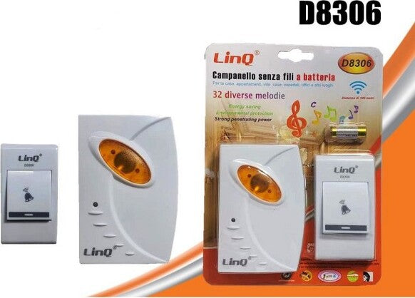 Campanello Wireless A Batteria Senza Fili 32 Melodie Casa Porta Distanza 100mt D8306