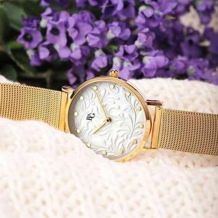 L’orologio B&G Preppy R3853252557 è l’accessorio perfetto per chi ama distinguersi con stile. Realizzato in acciaio e lega di zinco, presenta una raffinata finitura gold con quadrante floreale in rilievo, simbolo di femminilità e ricercatezza.