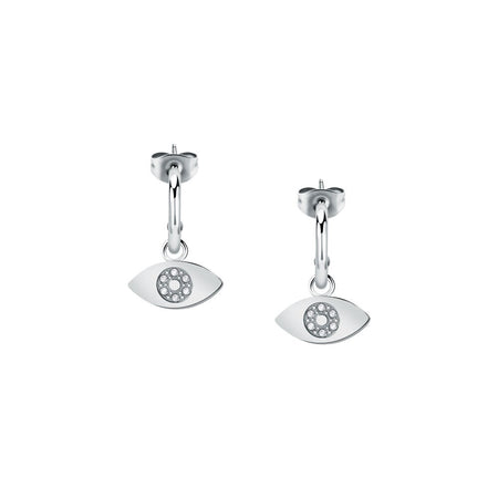 Orecchini MORELLATO da donna della collezione 'Passioni' realizzati in acciaio con occhio impreziosito da cristalli bianchi. Dimensione circa 18 mm