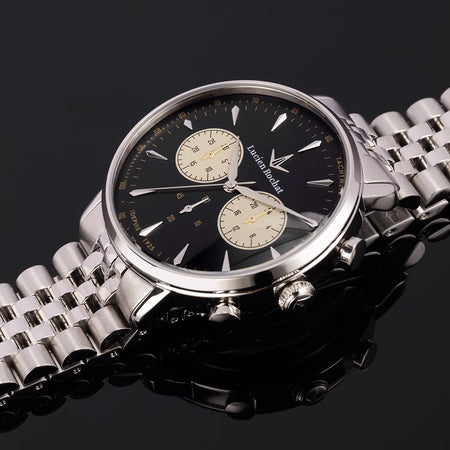 Orologio LUCIEN ROCHAT da uomo collezione CarCon con bracciale in acciaio, cassa in acciaio 41 mm, quadrante nero con cronografo. Movimento al quarzo.