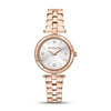 La cassa da 34 mm e il cinturino sono realizzati in metallo color oro rosa, con finitura lucida.