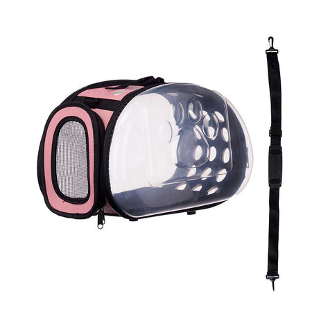 Trasportino per cane gatto Trasparente con Maniglia Tracolla 37x17 H22cm Rosa