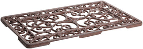 Zerbino rettangolare di dimensioni L58xPR34xH1,5 cm realizzato in ghisa. Finemente decorato, è completo di piedini in gomma. Dal disegno classico, per dare un tocco di eleganza alla vostra casa o all'ingresso del vostro terrazzo