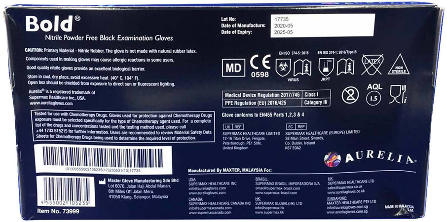 100 Guanti In Nitrile Aurelia Bold Neri Guanto Nero Senza Polvere 5mil Latex Free Ambidestro Aurelia Gloves