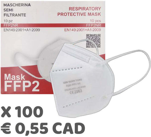100X Mascherina FFP2 NR Bianche Certificate CE2163 Mascherine Zhejiang Gen Yuan Tang Medical Technology Certificazione CE2163- DPI | bfe ≥95% | Imbustate Singolarmente