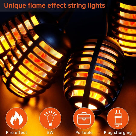 10m 12 Lampadine 5W Realistico Effetto Fiamma Luci Stringa IP44 Impermeabili