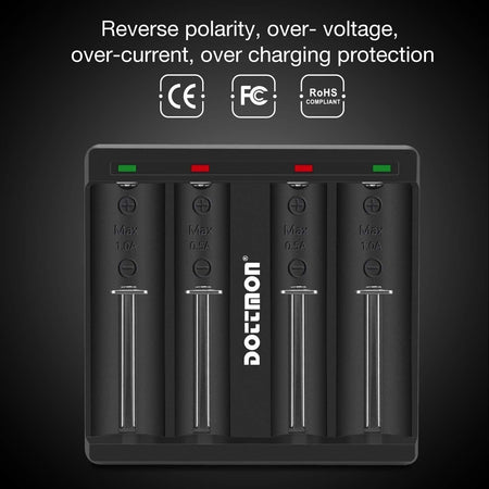 Caricabatterie 4 slot intelligente con display LCD universale per batterie ricaricabili agli ioni di litio 18650 18490 18350 17670 17500 16340 (RCR123) 14500 26650, A AA AAA SC