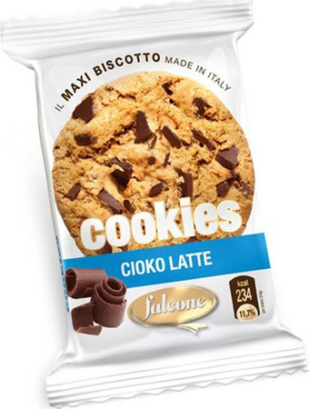 Cookies Cioko Latte Dolciaria Falcone Monoporzione 50 Gr. Biscotto con Scaglie Di Cioccolato Cookie Imbustato Singolarmente Senza olio di palma Made in Italy