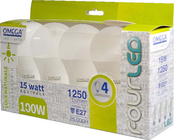 4x Lampadine Goccia A65 15 W Led 4000 K 1250 Lm E27 A+ Omega