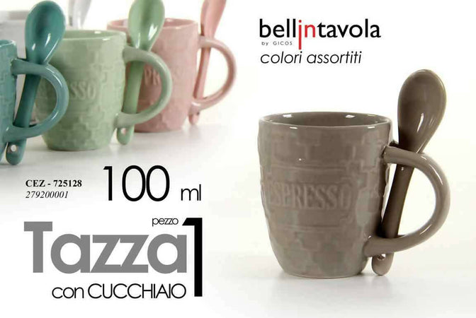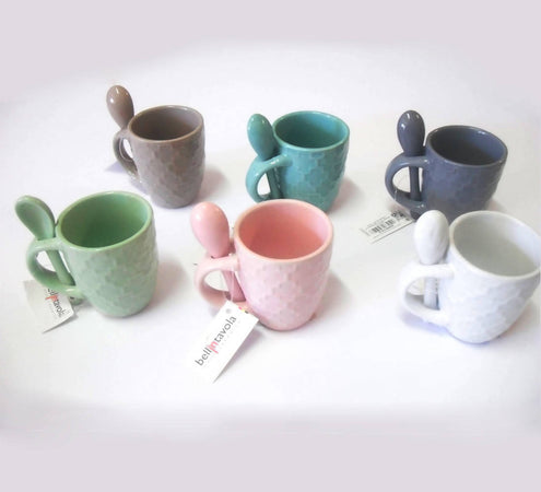 6 Tazzine Da Caffè 100ml Con Cucchiaino In Ceramica Bellintavola Tazzine Da Caffè Design In Ceramica Colori Pastello