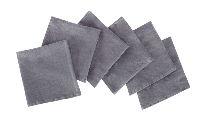 Set di 6 tovaglioli da tavola 45 X 45 CM in 100% puro lino lavato delavè stone washed morbido resistente elegante made in italy ANTRACITE