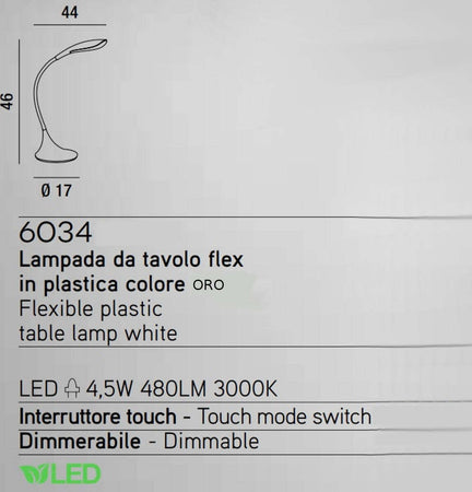 Abat-jour classica Perenz SONAGLI 6034 OR LED lampada scrivania flessibile oro dimmerabile touch