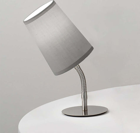 Lampada da tavolo in metallo cromo spazzolato e paralume in tessuto, E14 LED