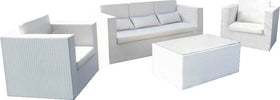 ABELLINUM - salotto da giardino completo di cuscini intreccio in rattan sintetico Bianco Milani Home