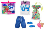 Questi pacchetti moda offrono il doppio del divertimento in termini di moda con vestiti e accessori per le bambole Barbie e Ken per 2 look completi. I morbidi capi di moda di Barbie e Ken vestiti magliette o pantaloni sono realizzati in tessuto di plastica riciclata Il completo di Barbie e' caratterizzato da un vestito con stampa tropicale e viene fornito con una borsa di paglia per un look divertente ed estivo. Il completo Ken presenta una maglia senza maniche 04 e pantaloncini da bagno e viene fornito con scarpe slipon per una giornata sportiva al sole