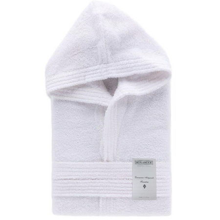Accappatoio Mon Amour con cappuccio tinta unita bianco 400 gr.di spugna idrofila TG.XXL
