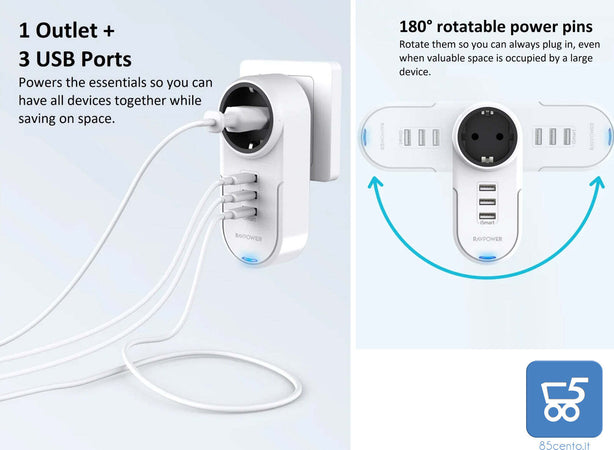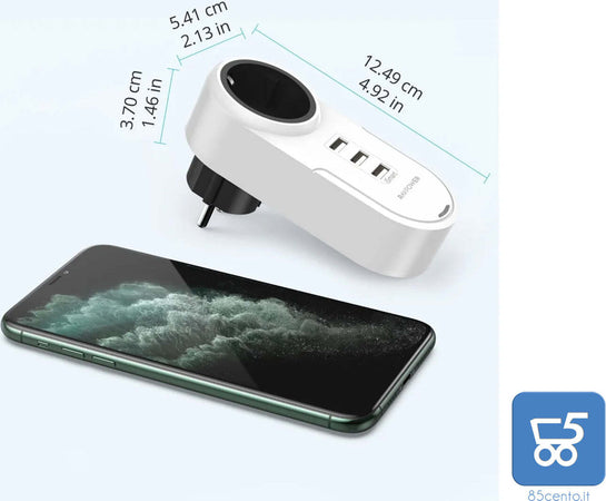 Adattatore 230V 16A con Presa Schuko 3 ingressi USB 3,4A Totale 5V da Parete