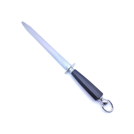 Affilatoio per coltelli da macellaio in acciaio con cerchio per appendere