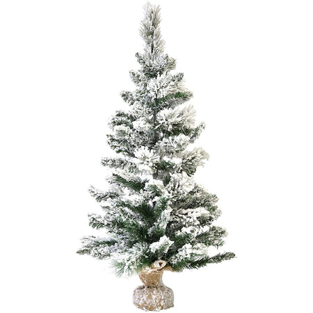 Albero di natale "Pinetto Timmy Innevato" in PVC + Flock Bianco con base in juta