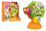 Albero Musicale Ventosa Amici Giungla e' Un albero rotante interattivo con simpatici personaggi della giungla. Fai girare l'albero per riprodurre suoni divertenti, melodie e luci lampeggianti. Contiene tre divertenti personaggi della giungla: un bradipo, un pappagallo sfacciato e un'ape indaffarata. Puoi far girare il bradipo, premere il pulsante sul pappagallo e anche fare l'ape per luci e suoni. e' dotato di una ventosa che fissa facilmente il giocattolo a qualsiasi superficie piana e liscia, rendendolo perfetto per un tavolo o un seggiolone.