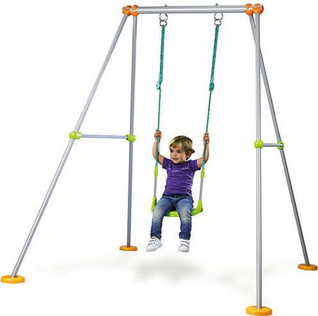 Smoby Altalena Plus e' costituita da una struttura resistente in tubolare metallico e piedini di ancoraggio antiscivolo colorati. Il tubolare in metallo e' composto da materiale ultra-resistente. Munita di sedile evolutivo con doppio uso (con davantino e spartigambe adatto gia' dai 18 mesi) e corde a sostegno della seduta. Dimensioni prodotto montato: 164 x 168 x 180 cm
