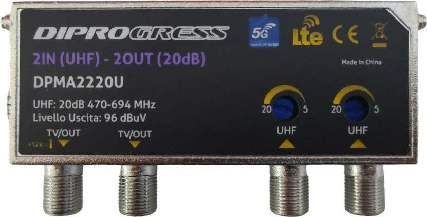 Amplificatore da palo 20dB regolabile con filtro LTE 5G 2 Ingressi / 2 Uscite DIPROGRESS DPMA2220U