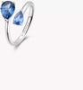 Anello regolabile in argento rodiato 925‰ con pear cubic zirconia colore sapphire.