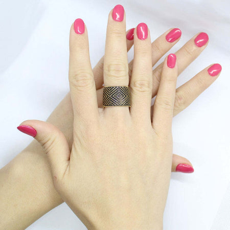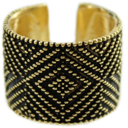 Fede sarda anello fascia aperta in argento brunito su dorato lavorazione tappeto a pallini