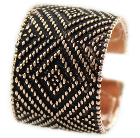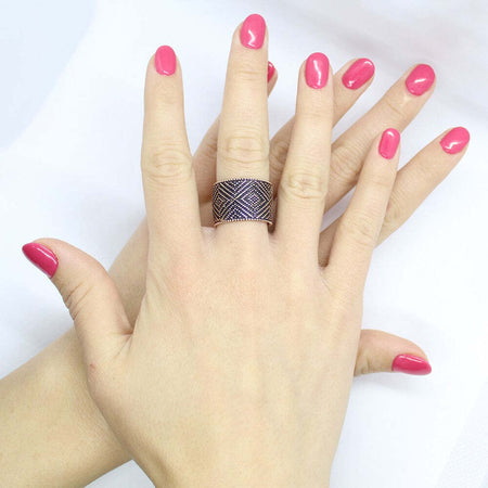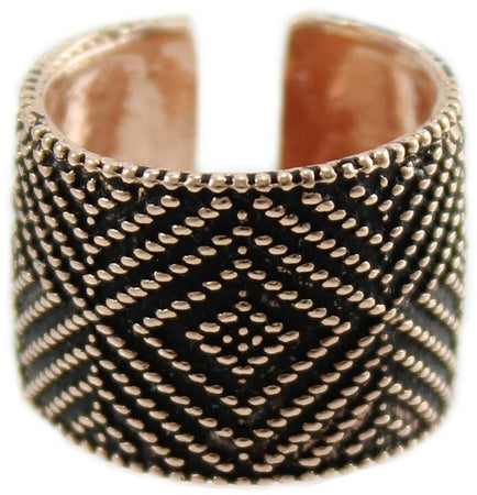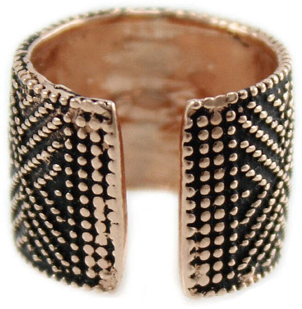 Fede sarda anello fascia aperta in argento brunito su rosa lavorazione tappeto a pallini