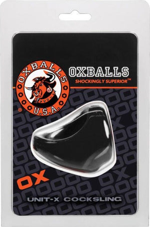 UNIT-X is from our new design boys at OXBALLS, a new brand of gear from OXBALLS... COCKSLING is a hard-core, meaty cock-toy built tough for the long haul--but UNIT-X is a sleek, sporty, power-fucksling built for speed...it wraps around just the base of your dick and the top of your ballsack, no extra thick rings or chunky bits...it made from a all new TPR blend that's stretches more and it feels more rubbery...UNIT-X fits big or slim dicks, it fits huge balls or high & tight nut-sacks...