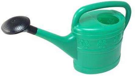 Annaffiatoio con una capacità di 5 litri e 10 litri. Il prodotto è realizzato in resistente plastica verde. L'estremità rimovibile dell'annaffiatoio ha un filtro per spruzzare l'acqua.