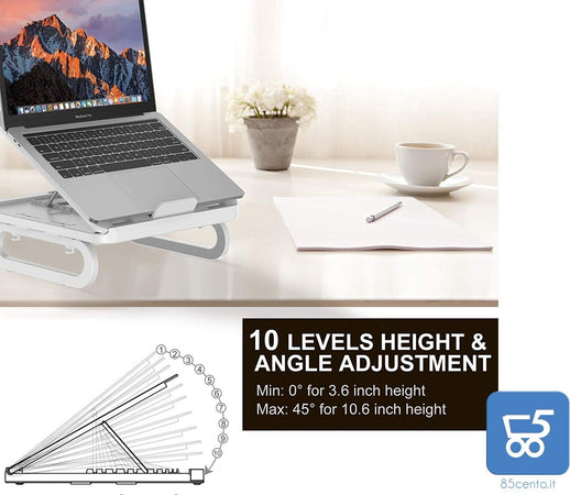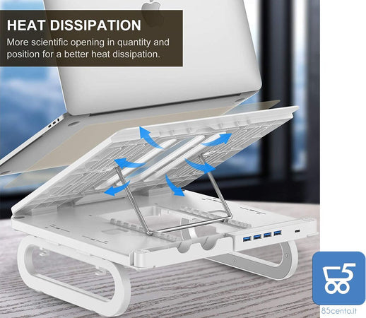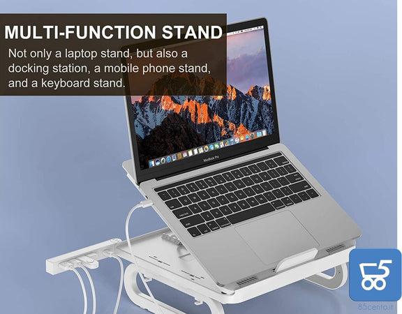 AOPOY - Supporto PC Portatile, Supporto per Laptop Multi-Angolo Regolabile - Compatibile per Laptop (10-17 Pollici) MacBook PRO/Air, Surface Laptop, Samsung, HP (BIANCO) con prese USB e portacellulare integrato
