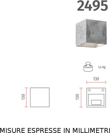 Applique cemento Belfiore 9010 KUBO CEM 2495.3082 LED lampada parete rustica