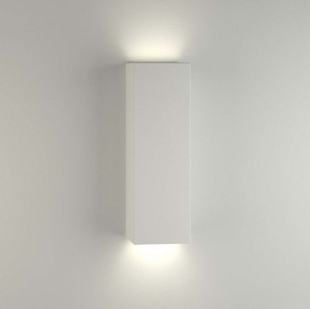 Corpo in gesso bianco da poter anche dipingere (con colori ad acqua) come la parete sottostante o riprendere un colore nella stanza. L'applique è provvisto di due portalampade attacco GU10 per lampadine a LED. Lampade non incluse.