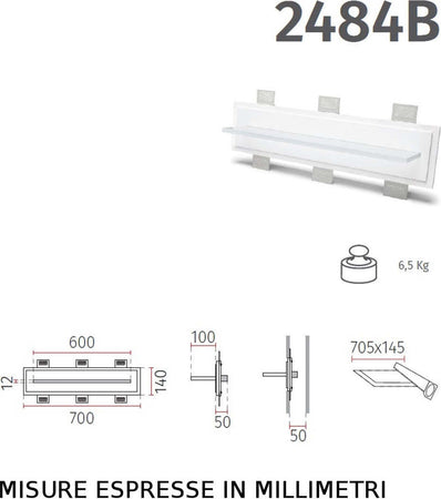 Applique incasso gesso Belfiore 9010 GLAX 2484B.3004 LED 24V SISTEMA WIRELESS lampada parete