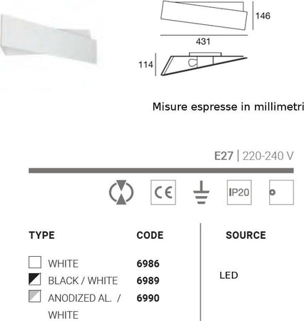 Applique moderna Linea Light Group ZIG ZAG W 6986 6989 6990 E27 LED metallo lampada da parete