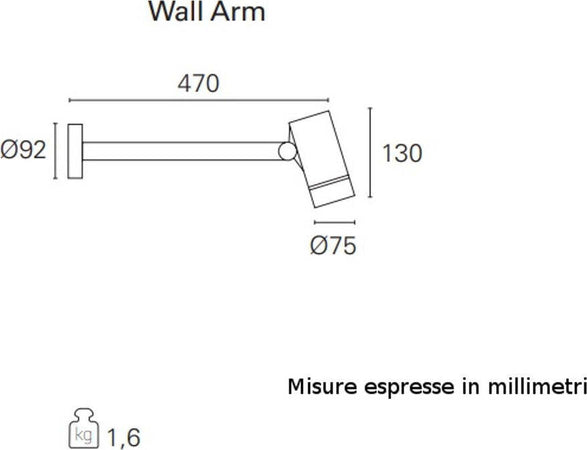 Applique moderno PAN International SHOOT EST754 WALL ARM LED lampada parete alluminio