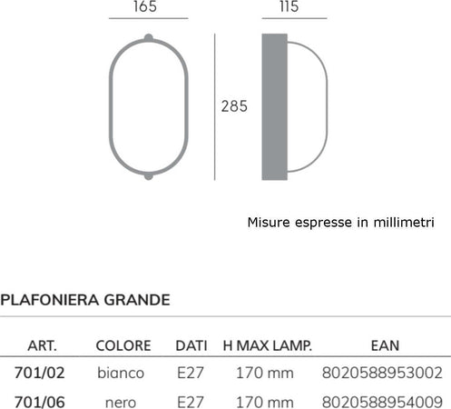 Applique moderno Sovil illuminazione INDUSTRIALE OVALE 701 E27 LED alluminio lampada parete soffitto