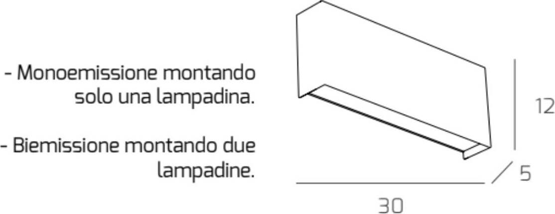 Lampada da parete formata da una lastra di metallo verniciato in diverse finiture. Diffusori in plexiglass sopra e sotto.
