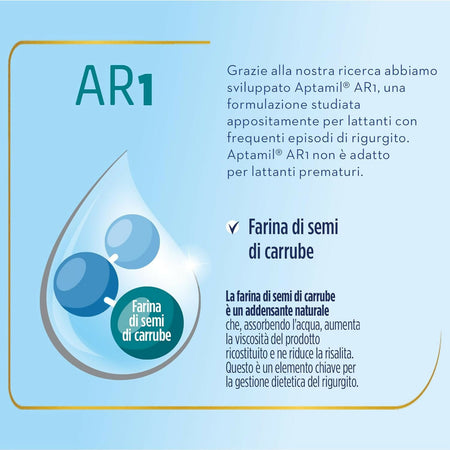 Aptamil AR1, Latte Antirigurgito in Polvere per Neonati dalla Nascita al 6° mese compiuto, Confezione da 400gr