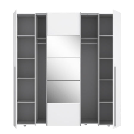 Armadio Callia 2 ante battenti bianco e 2 ante scorrevoli con specchio 200.1x61.2xH210.5 cm.